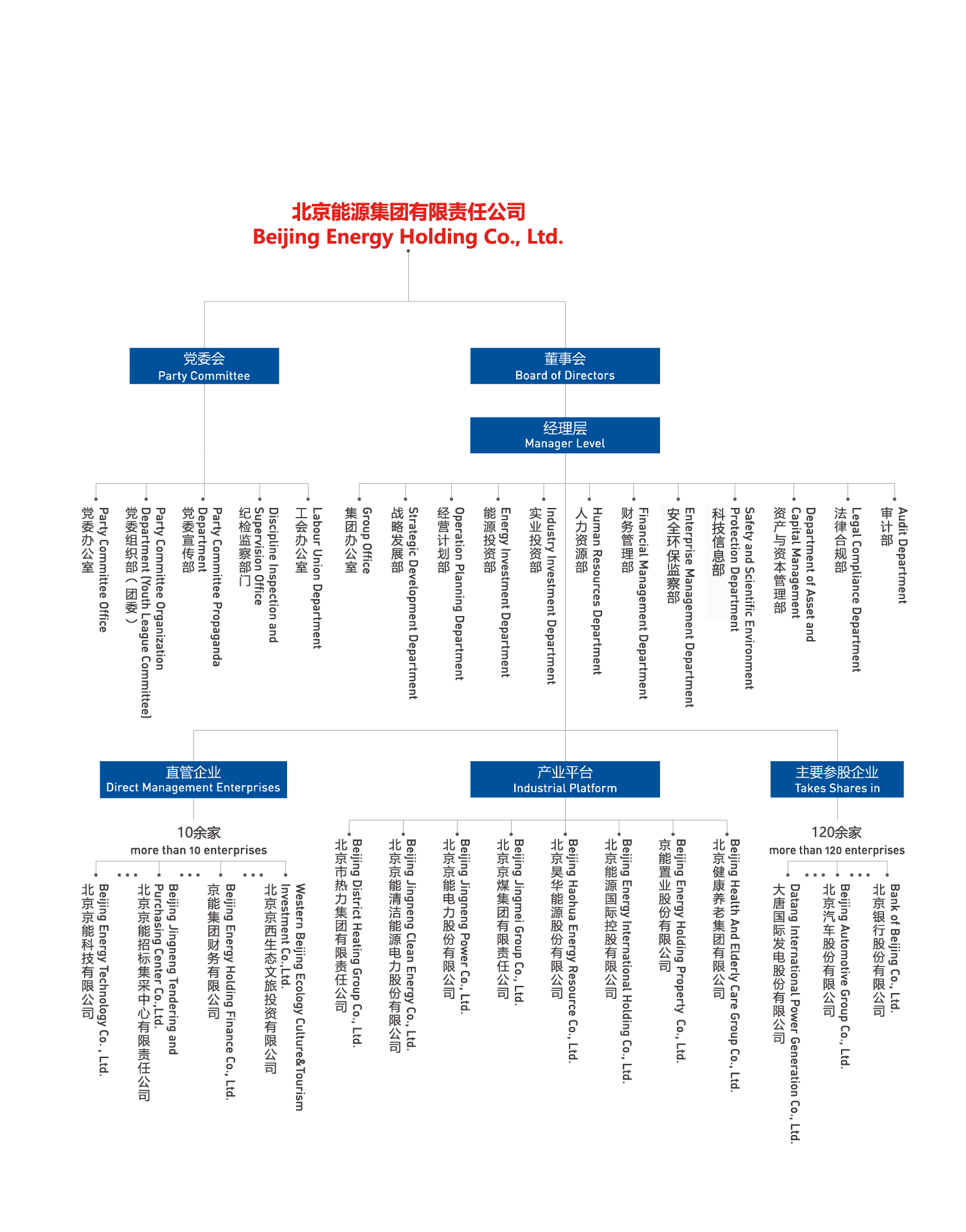 北京能源集團有限責任公司(以下簡稱“京能集團”或“集團”)是北京市人民政府出資設(shè)立的國有獨資公司,肩負著保障首都北京能源安全可靠供應(yīng)的重任。集團成立于2004年,由原北京國際電力開發(fā)投資公司和原北京市綜合投資公司合并而成,2011年、2014年先后又與北京市熱力集團有限責任公司、北京京煤集團有限責任公司實施合并重組,實現(xiàn)了產(chǎn)業(yè)鏈條融合互補。經(jīng)過多年的資源整合,集團由單一能源產(chǎn)業(yè)發(fā)展為熱力、電力、煤炭、健康文旅等多業(yè)態(tài)產(chǎn)業(yè)格局。2024年底,集團資產(chǎn)規(guī)模達4934億元,年營業(yè)收入975億元,全資及控股企業(yè)860余家,參股企業(yè)120余家,擁有員工3.4萬余人,投資區(qū)域遍布全國33個省市區(qū)以及海外,控股京能清潔能源、京能電力、昊華能源、京能置業(yè)、北京能源國際、京能熱力六家上市公司,盈利水平長期穩(wěn)居北京市屬企業(yè)前列。2024年在中國企業(yè)500強排名第247位,中國服務(wù)企業(yè)500強排名第87位。